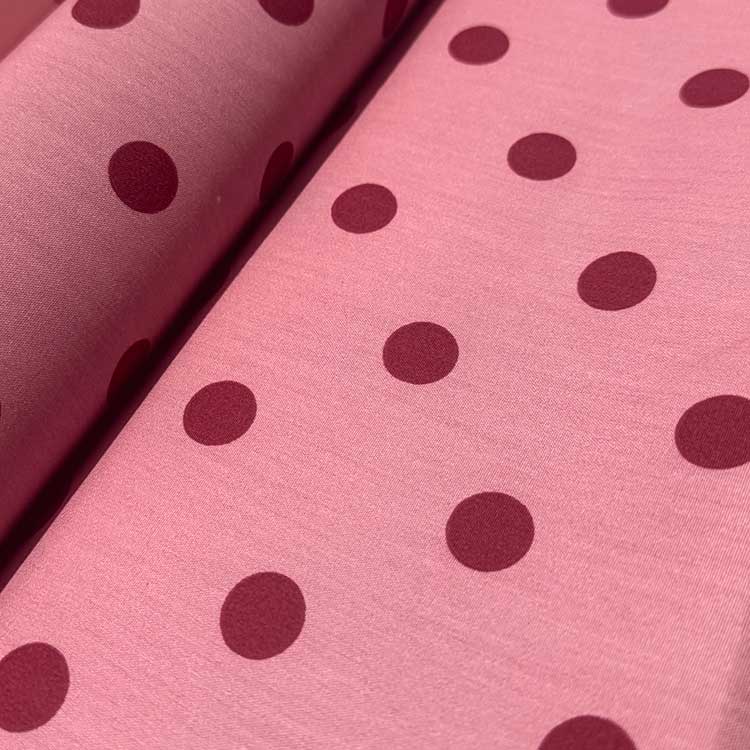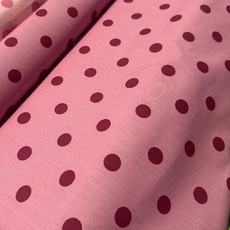 Popelín Rosa Empolvado Lunar Burdeos.