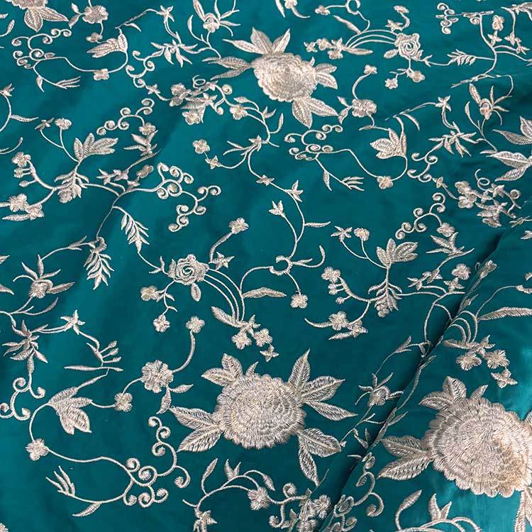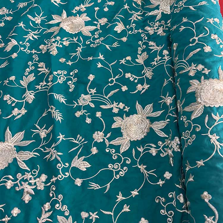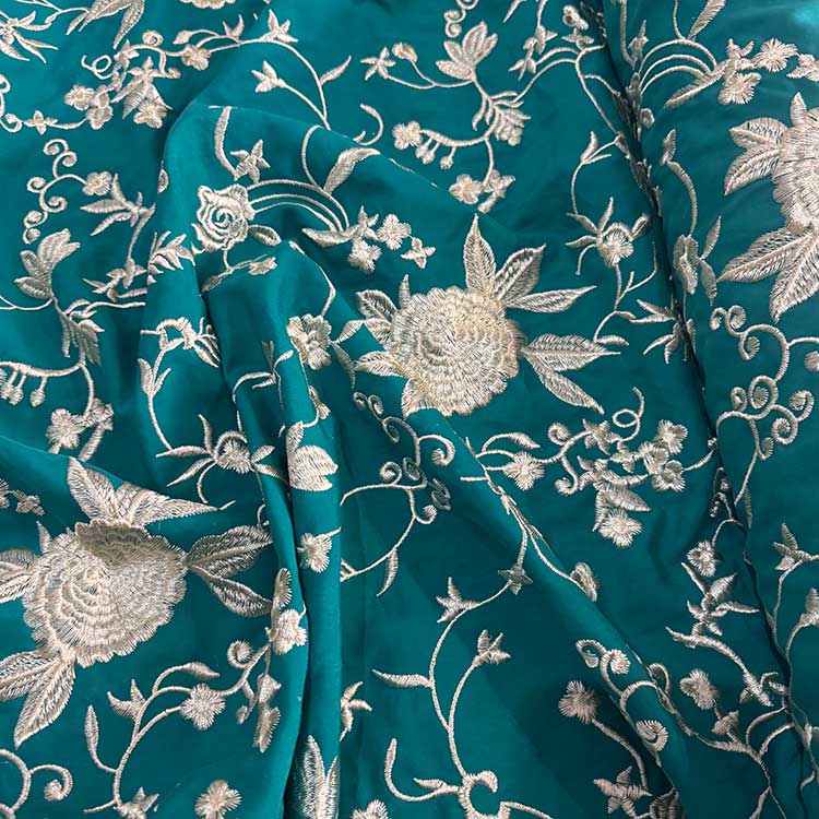 Viscosa Aguamarina Bordada En Seda Marfil
