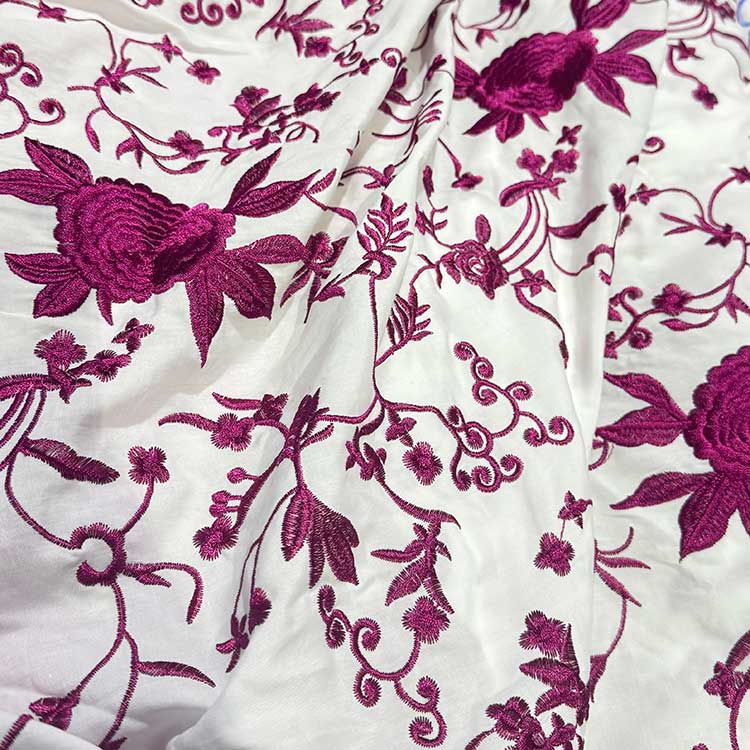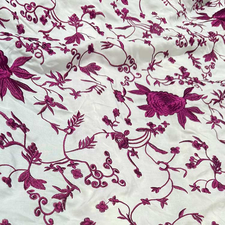 Viscosa Blanca Bordada En Seda Buganvilla.