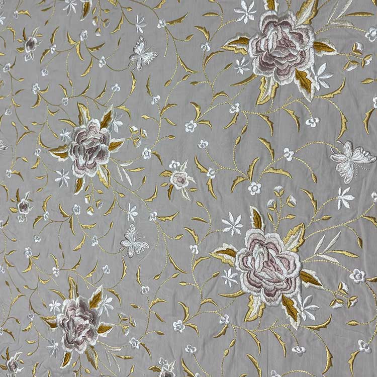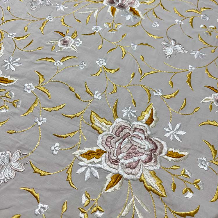 El tejido tiene las flores bordadas, es un tejido con caída, versátil y apto para cualquier tipo de diseño.