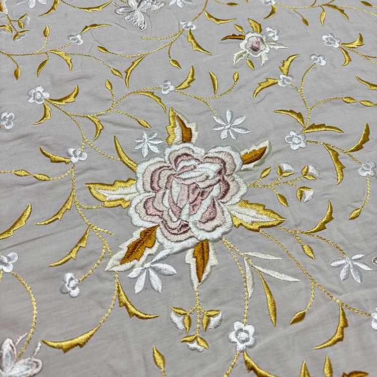 Viscosa Marfil Bordada En Seda Marfil Y Dorado